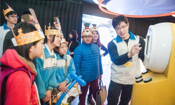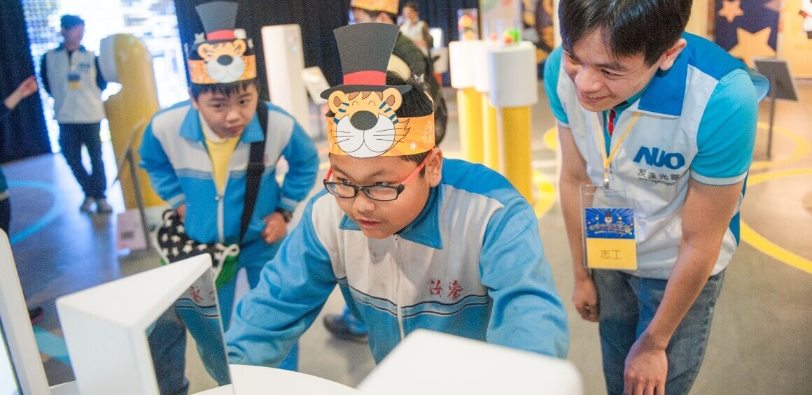 友達光電延伸核心光電專業,2009 年起即深度結盟國立自然科學博物館,打造光電原理的學習基地,從太陽、光學和色彩原理出發,延伸到視覺和影像概念,再透過面板技術設計而成互動機台,呈現光電原理的應用和實踐。秉持對科普教育的重視,透過導覽解說的方式,搭配現場推廣光學知識,啟發民眾對光電基礎科學的興趣。